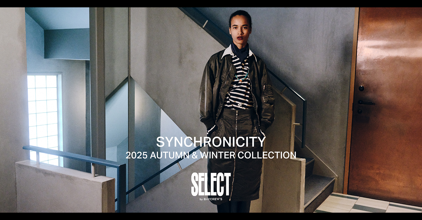 ファッションからライフスタイルまで、虎ノ門エリアにおけるカルチャーの中心地として知られるSELECT by BAYCREW’S。軽快なアメカジにもフィットするスタンダードなアイテムはもちろん、ラグジュアリーなハイエンドブランドも手に入るレンジの広さが最大の魅力。急な旅路にも役立つ豊富なラインナップが出揃った、2025年の秋冬コレクションをベースに、ホテルで過ごすとある二人のシンクロする不思議な物語をお届け。