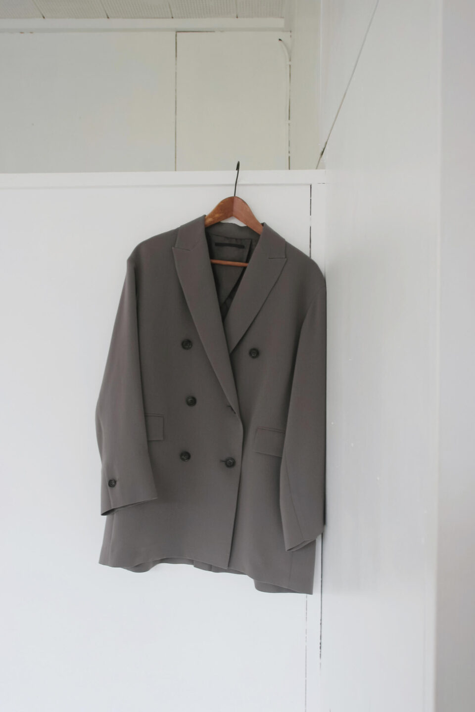 ピークドラペルにダブルブレストの端正なデザインで、少しゆとりを持たせたリラクシーな一着。柔らかなブラウンベースのチェック柄にほのかなライトブルーのラインが入り洗練された。袖に裏地をあしらい、滑らかな袖通しで軽快に羽織れる。79,200円(COUTURE D’ADAM) ブランド定番のダブルブレストジャケットがジョーゼット生地に厚みを持たせてアップデートして登場。都会的なカーキと流れるような落ち感が優美な印象に。51,700円(AP STUDIO) 厚みや風合いにこだわって厳選したカシミヤ混のウールサージ生地で、強度と光沢が共存しデイリー使用に長けた。金ボタンでダブル仕様のトラディショナルな印象だが、短丈がコーディネートの幅を広げスタイルアップも狙える。ジャケット78,100円(L’Appartemant)、キャップ7,150円(pcnq)