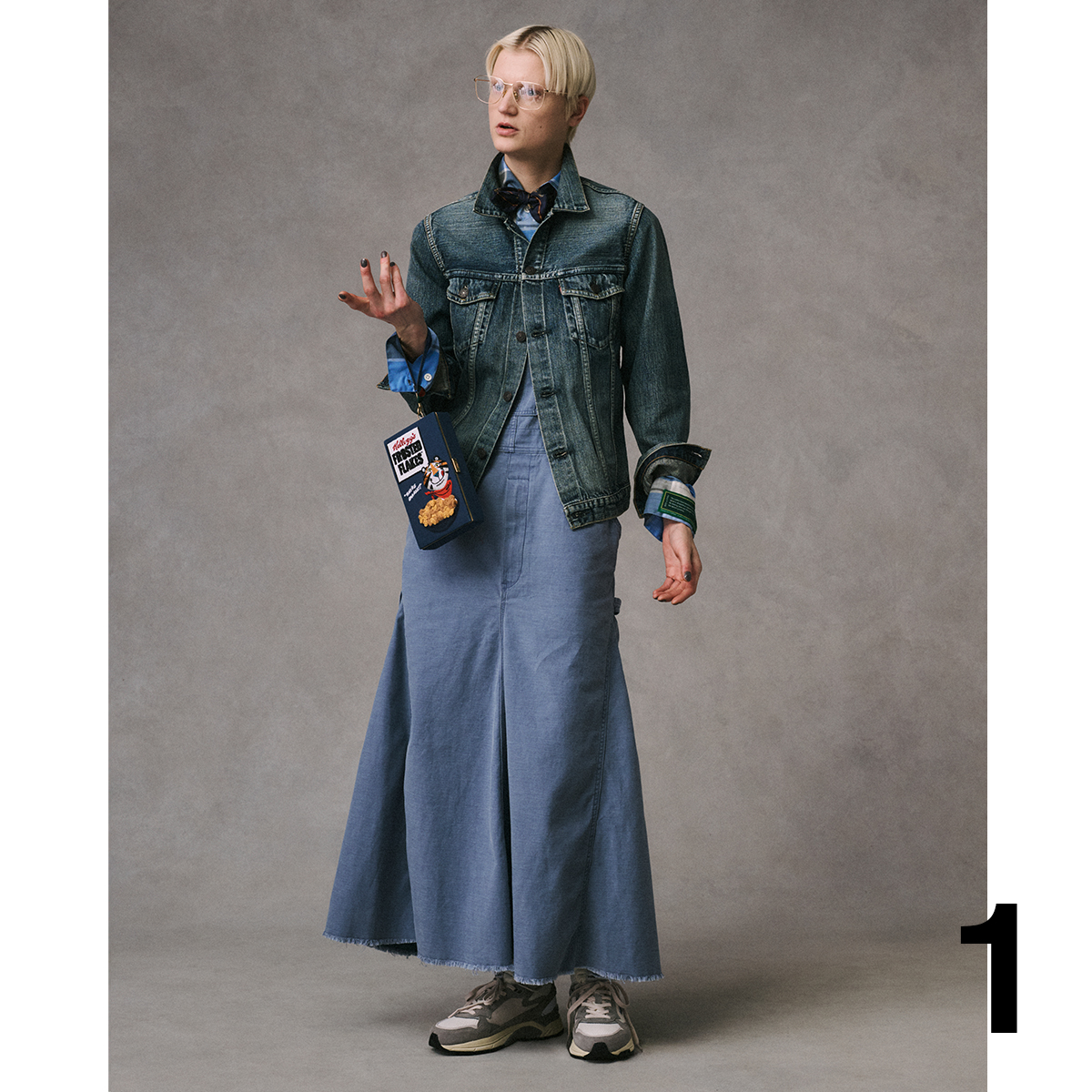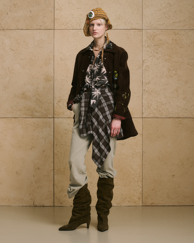 Jacket ¥308,000(GESHO STUDIO) Jacket/ Shirt(Palm) ¥42,900(COUTURE D’ADAM)/ Shirt(Check)¥37,400(Deuxième Classe)/ Pants ¥20,900(REMI RELIEF)/ Hat ¥41,800(PARDO)/ Pierce ¥75,900(Jeeyun Ha Designs)/ Necklace ¥880,000(LAUREN RUBINSKI)/ Boots ¥93,500(STRATEGIA)