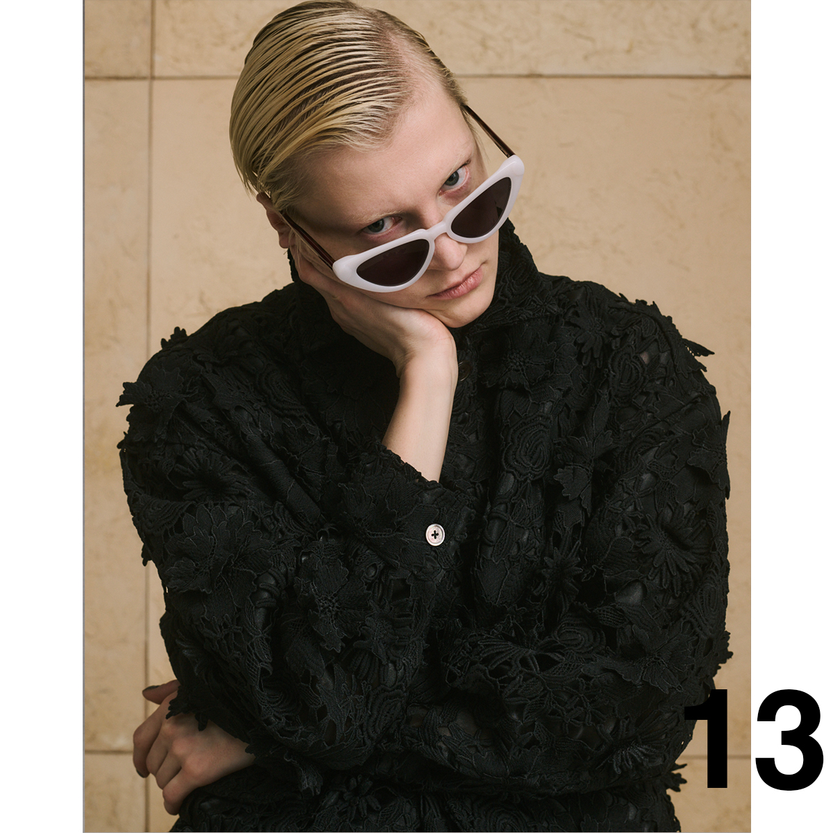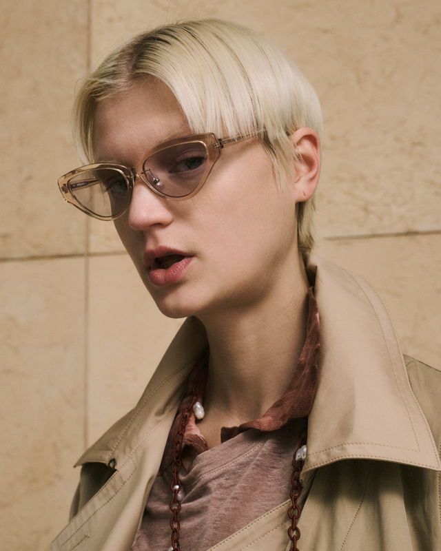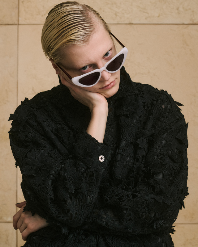 Jacket ¥44,000 (LAYAS)/ Blouse ¥19,800 (LAYAS)/ Pants ¥16,280(REMI RELIEF)/ Sunglasses ¥44,000(PROJEKT PRODUKT)/ Necklace ¥36,300(RAPONESA GENERAL STORE)/ Shoes ¥181,500(MAISON MARGIELA)