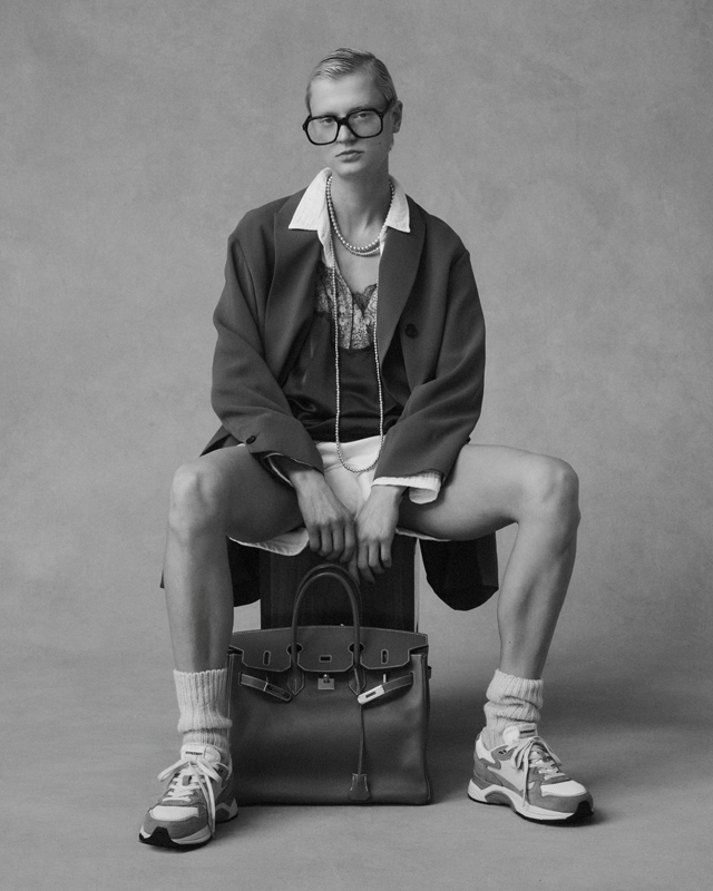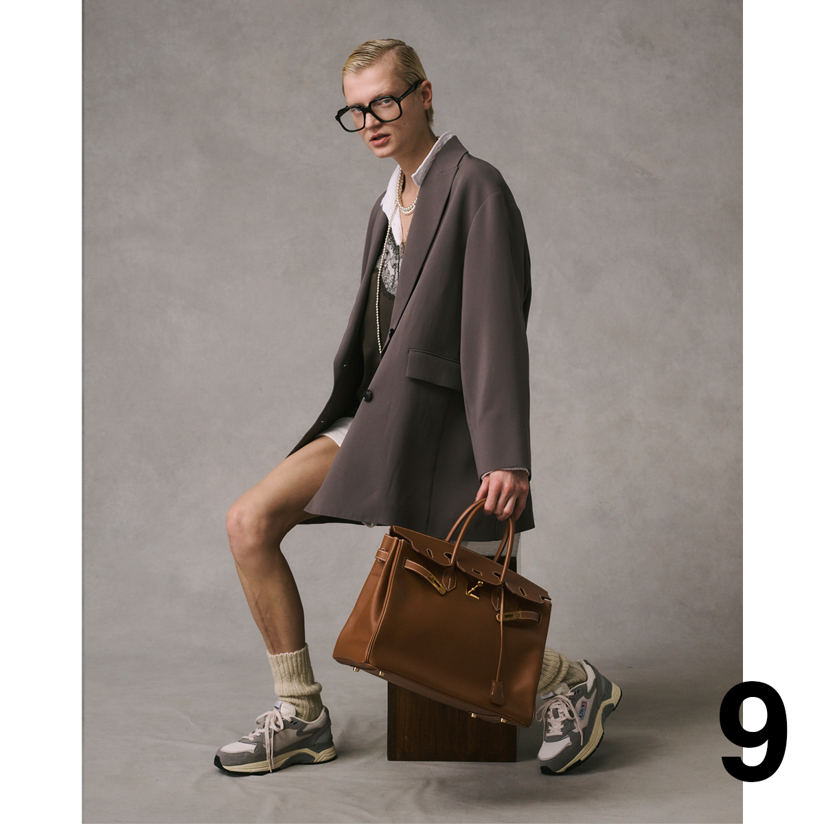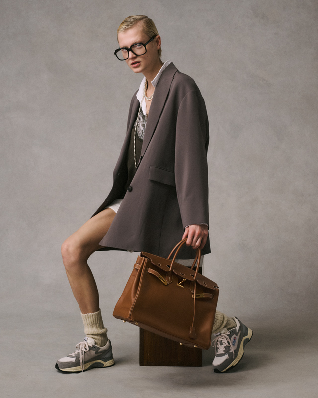 Jacket / Shirt / Camisole ¥62,700(raspail)/ Pants ¥16,280(REMI RELIEF)/ Glasses ¥58,300(alf)/ Necklace(short up) ¥63,800(HARPO)/ Necklace(short down) ¥102,300(HARPO)/ Necklace(long) ¥143,000(HARPO)/ B ag ¥1,980,000(Vintage HERMES)/ Shoes ¥38,500(AUTRY)