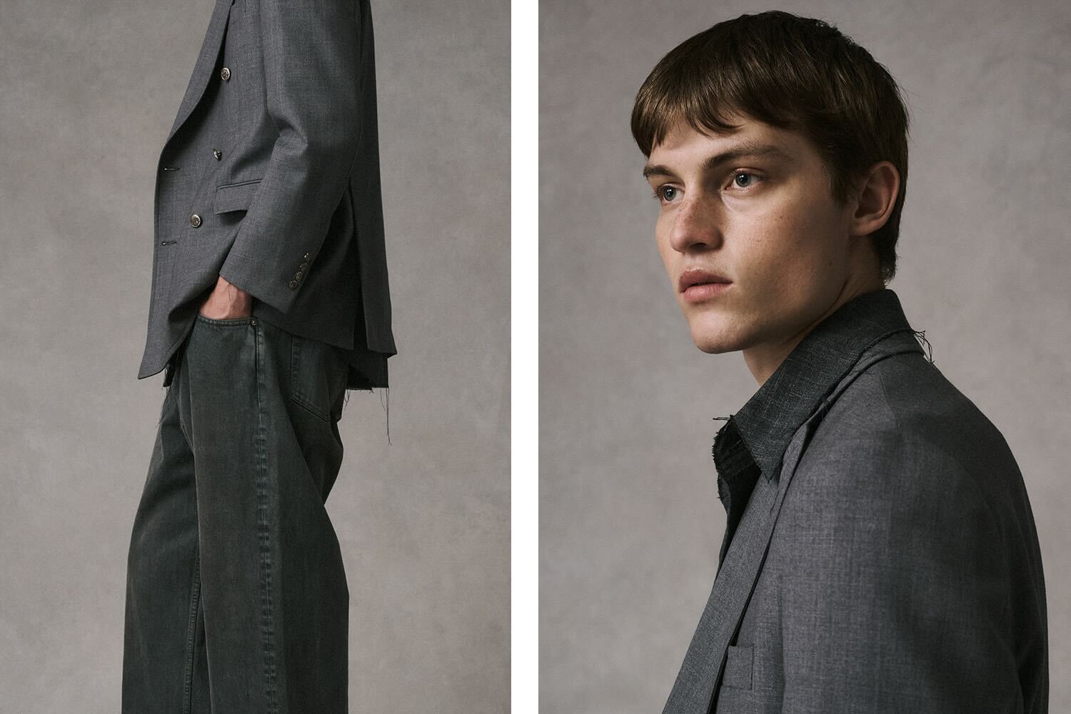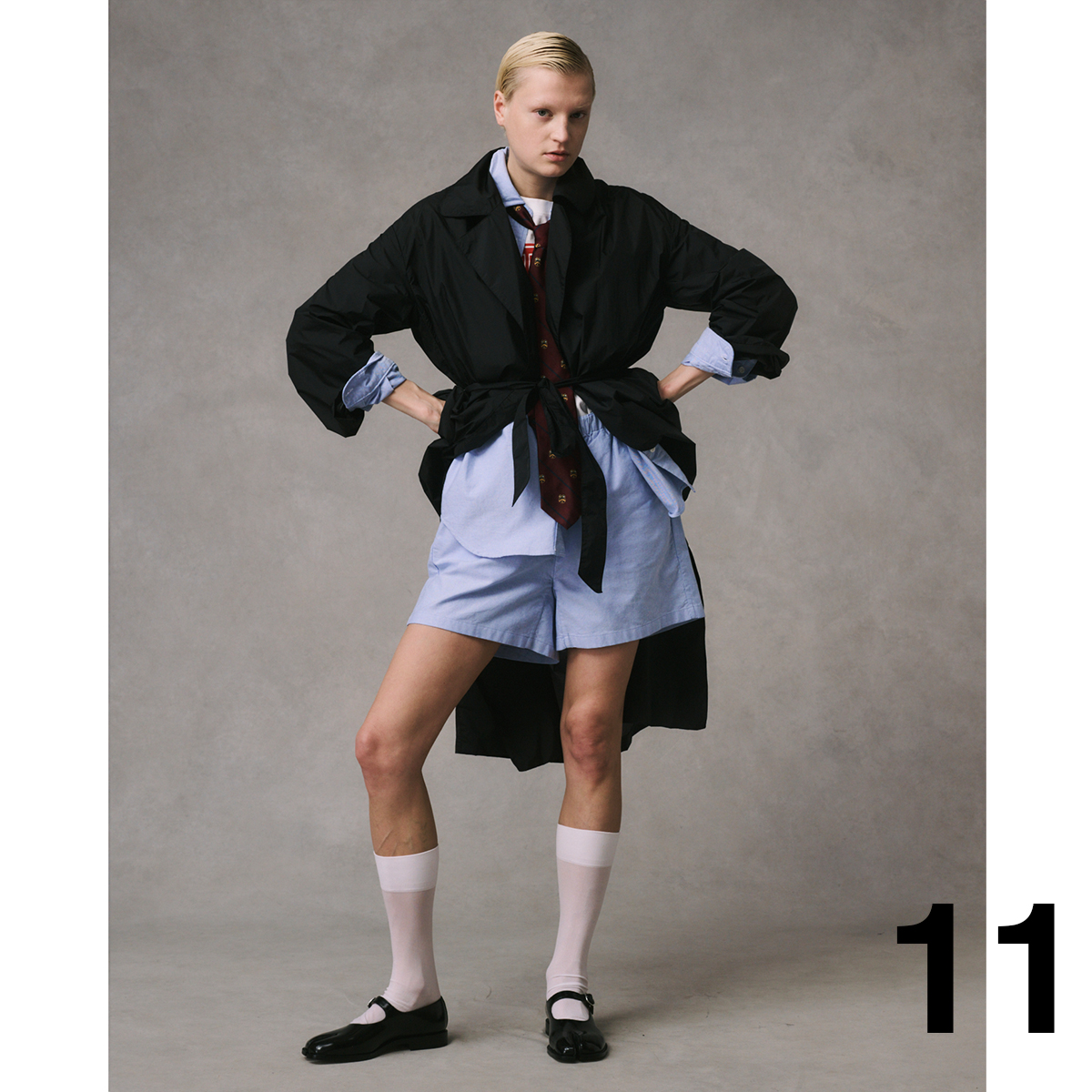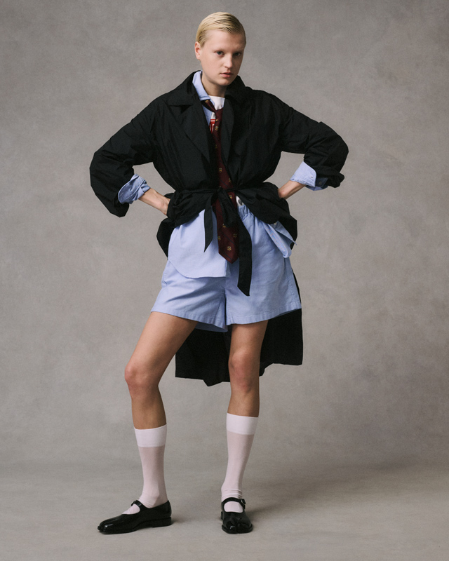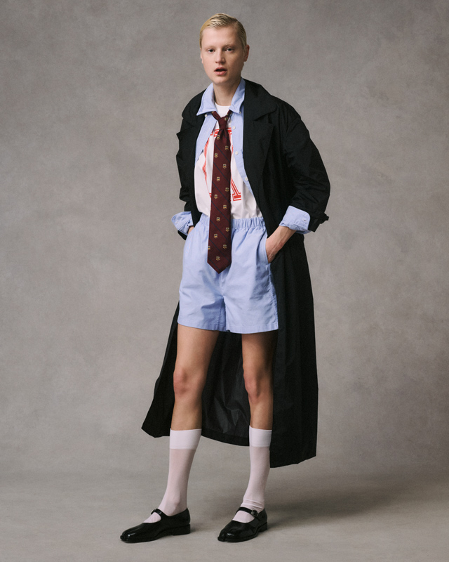 Coat ¥94,600(SEVENROOMS)/ Shirt ¥27,500(Deuxième Classe)/ T-shirt ¥5,390(Regency Works UK)/ Pants ¥24,200(Deuxième Classe)/ Tie ¥22,000(Polo Ralph Lauren)/ Shoes ¥181,500(MAISON MARGIELA)