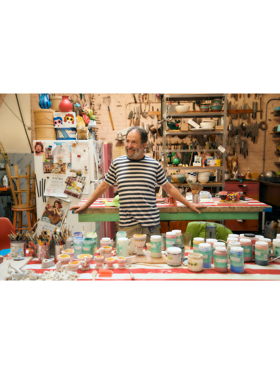 〈エコーパーク・ポタリー〉のマグを手がけるアーティスト、ピーター・シャイア。メンフィス・グループの創設メンバーとしても知られる彼は、いまもロサンゼルスで制作を続けている。スタジオでの時間や制作の背景について、話を聞いた。